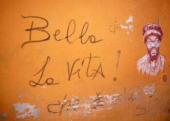 Les couleurs de l'Italie, aujourd'hui comme il y a deux mille ans. Voyage au fil des pierres et des teintes, lieux – Rome, Naples, Pompéi, Herculanum – et millénaires confondus.